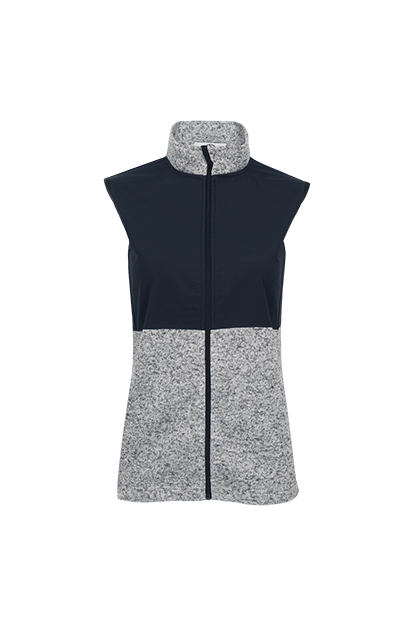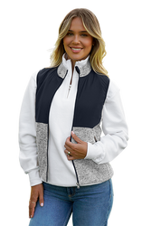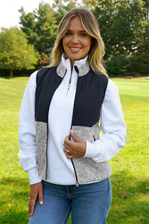 Designed for warmth without the bulk, this women's vest blends a soft sweater-knit fleece with styling color blocking. It's flattering fit and cozy brushed interior makes it a go-to layering piece for workdays, weekends, or any occasion where your logo deserves to stand.